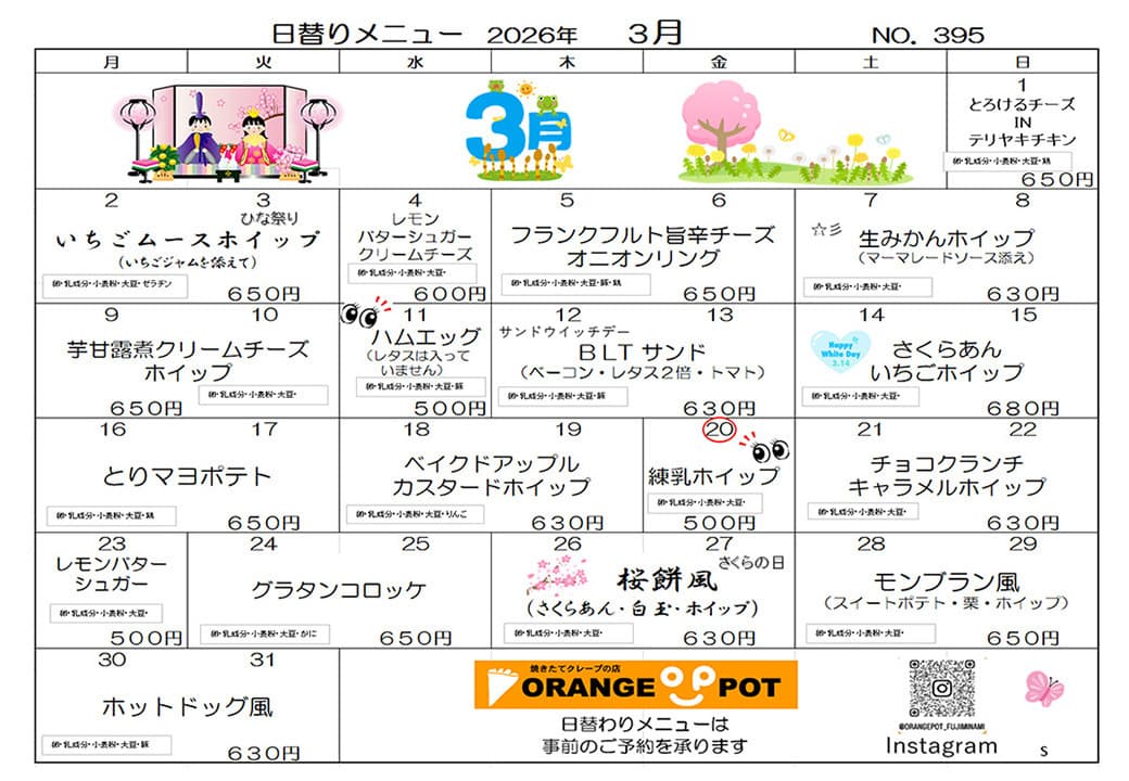 3月の日替わりメニューです。
