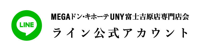 MEGAドン・キホーテUNY富士吉原店専門店会の最新情報やお得な情報をラインでお届けします!友だち追加はこちらからどうぞ! 専門店でのmajicaご利用開始のご案内 日曜日のお買い物はスタンプチャンス! NEWS 最新情報 {"articleType":"1","limit_article_num":"3","article_disp_offset":"0","article_disp_offset_num":"","article_new_offset":"1","article_new_offset_num":"5","blogs":[{"sid":"G7zTKxwDlrp_","categories":"","tags":"","order":"newer","name":"NEWS_fujiyoshiwarasenmontenkai","pathToFolder":"./blog/","topfile":"top.html","rss":"0"}]} [%article_date_notime_dot%][%new:New%] [%title%] [%lead%] 続きを読む READ MORE SPECIALTY STORES 専門店のご案内 1F 2F ACCESS アクセス